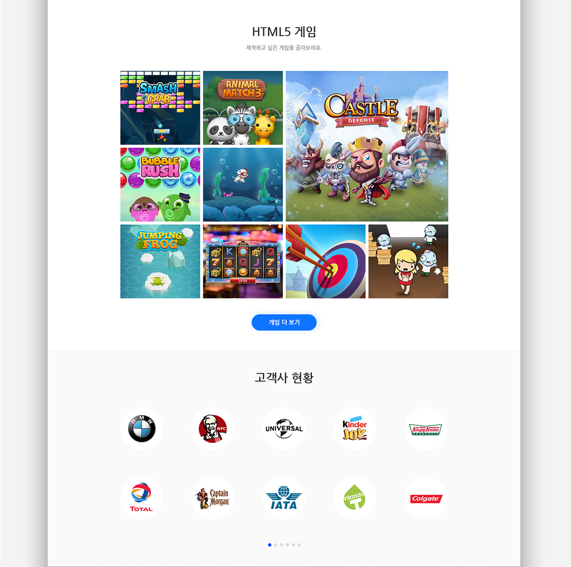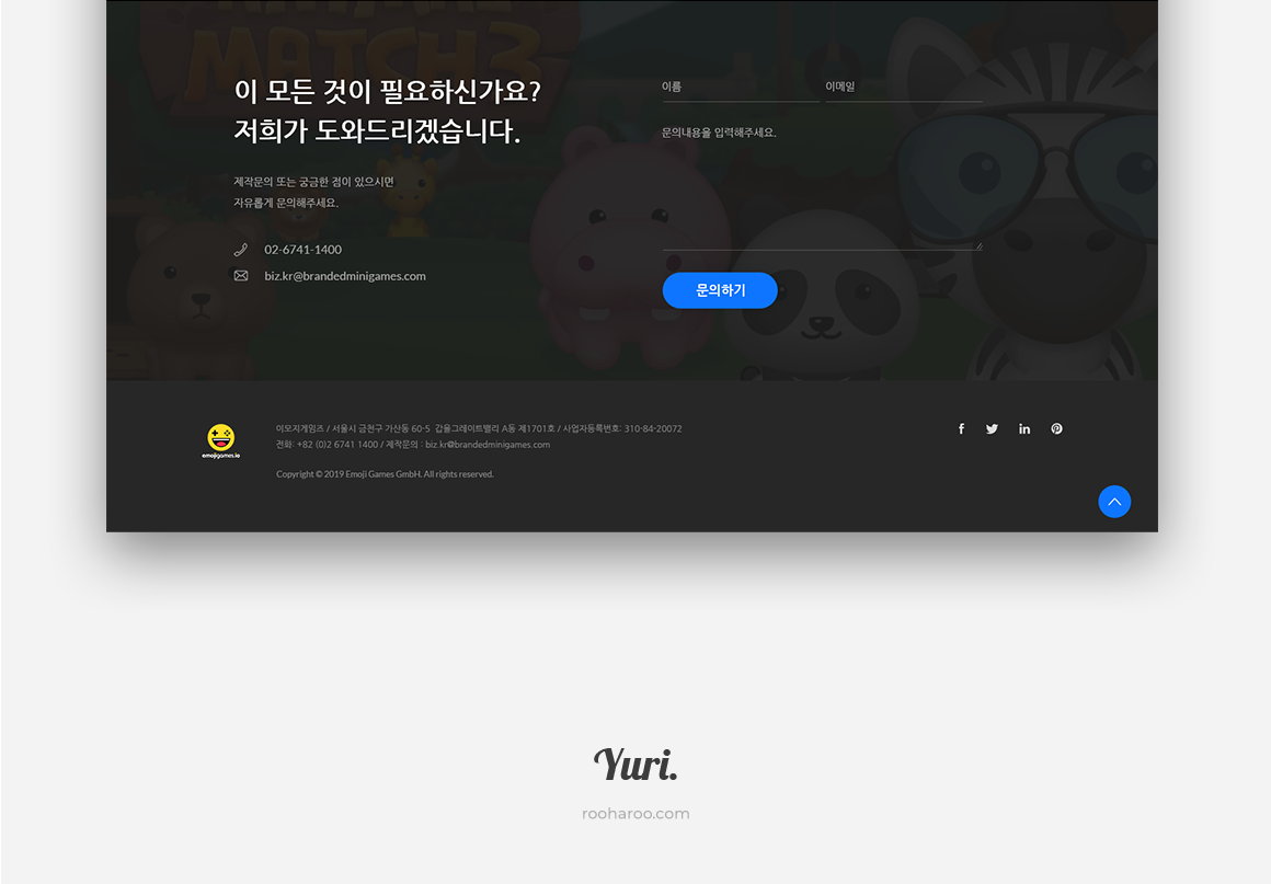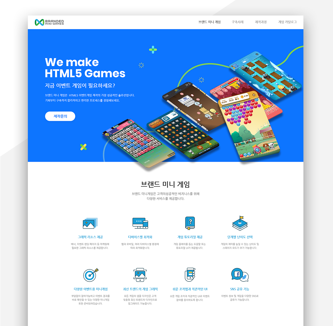 이모지게임즈의 서비스 프로덕트 중 하나인 "브랜드 미니 게임"의 한국어 사이트의 전체 디자인 작업을 진행하였습니다.