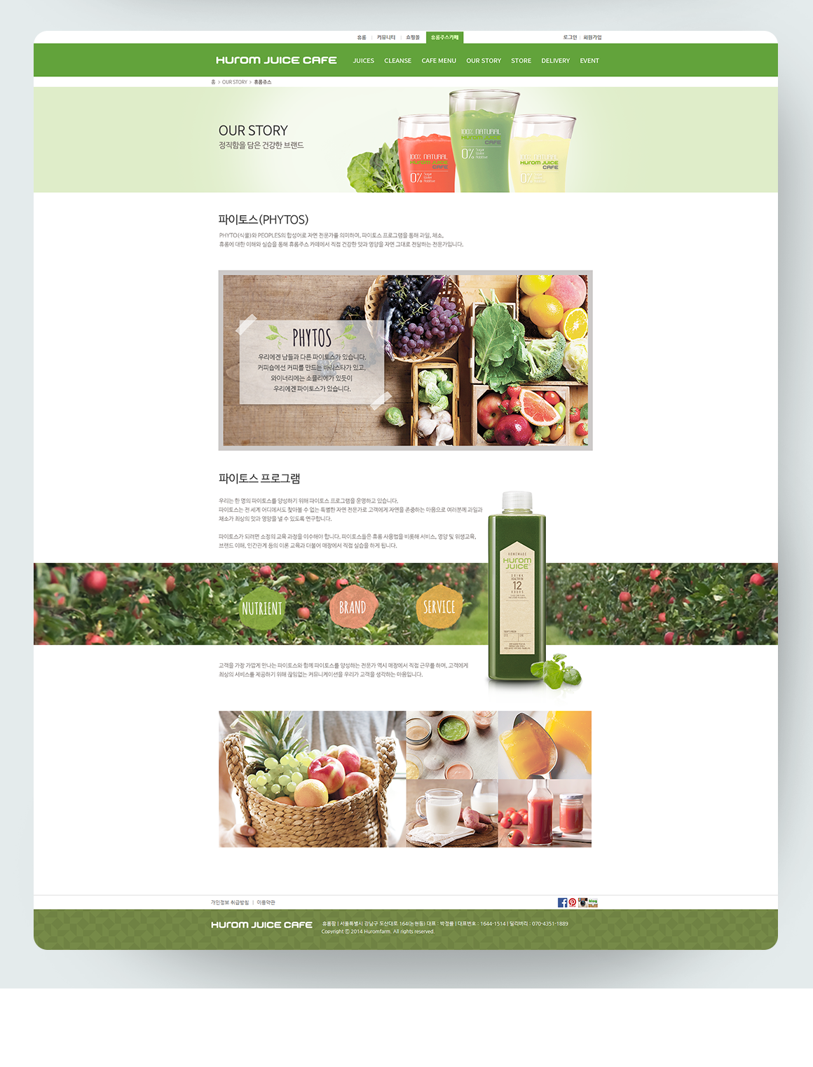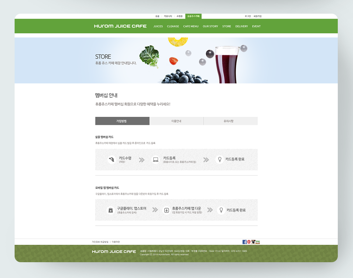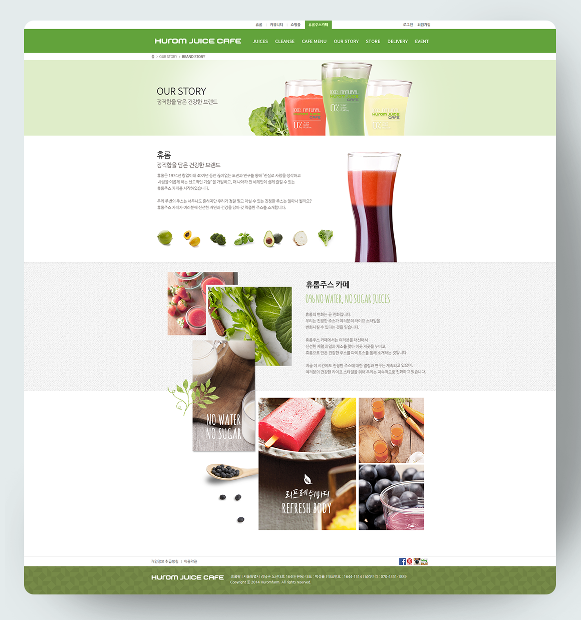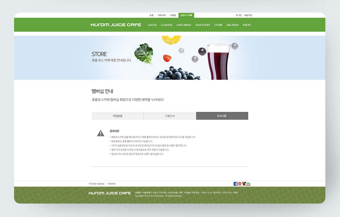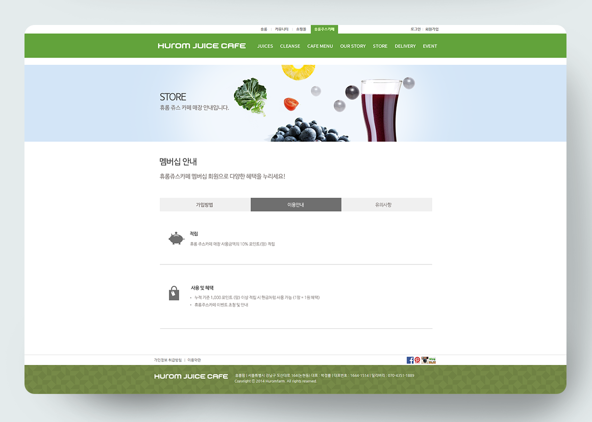"휴롬 쥬스 카페"의 공식 홈페이지 제작 프로젝트에 참여해 서브 페이지 작업을 진행했습니다.
