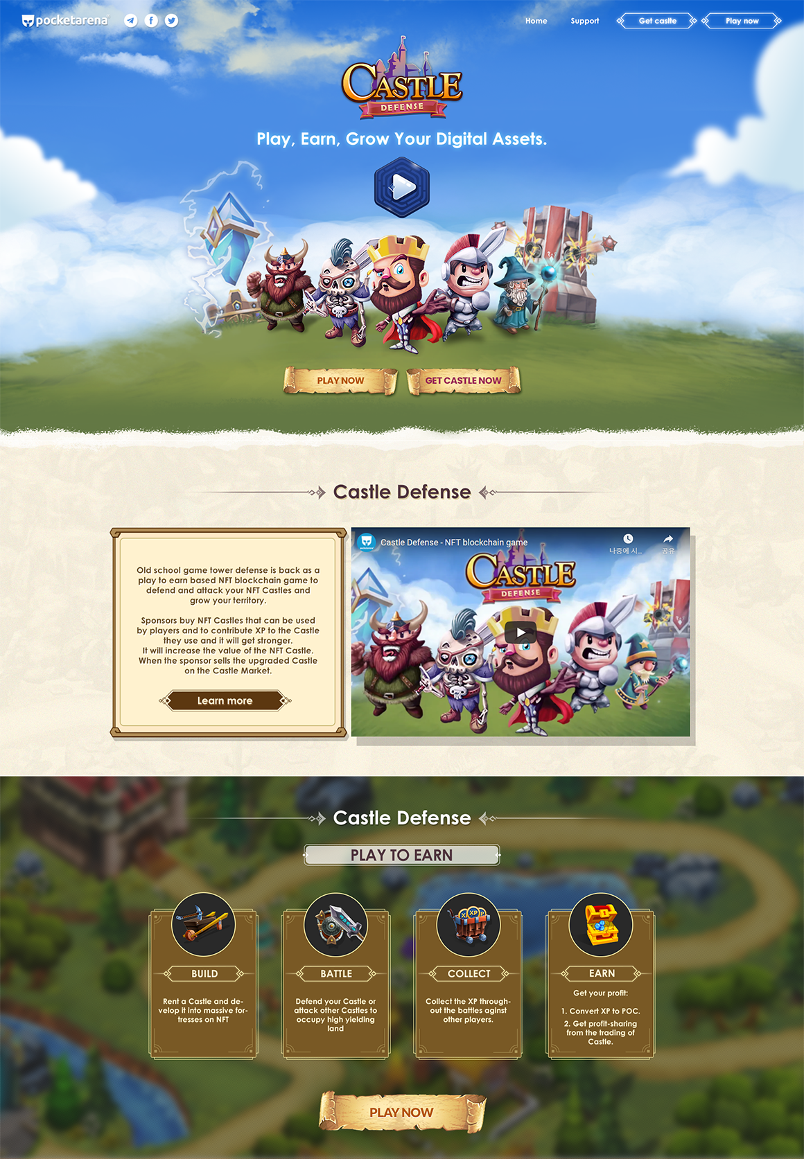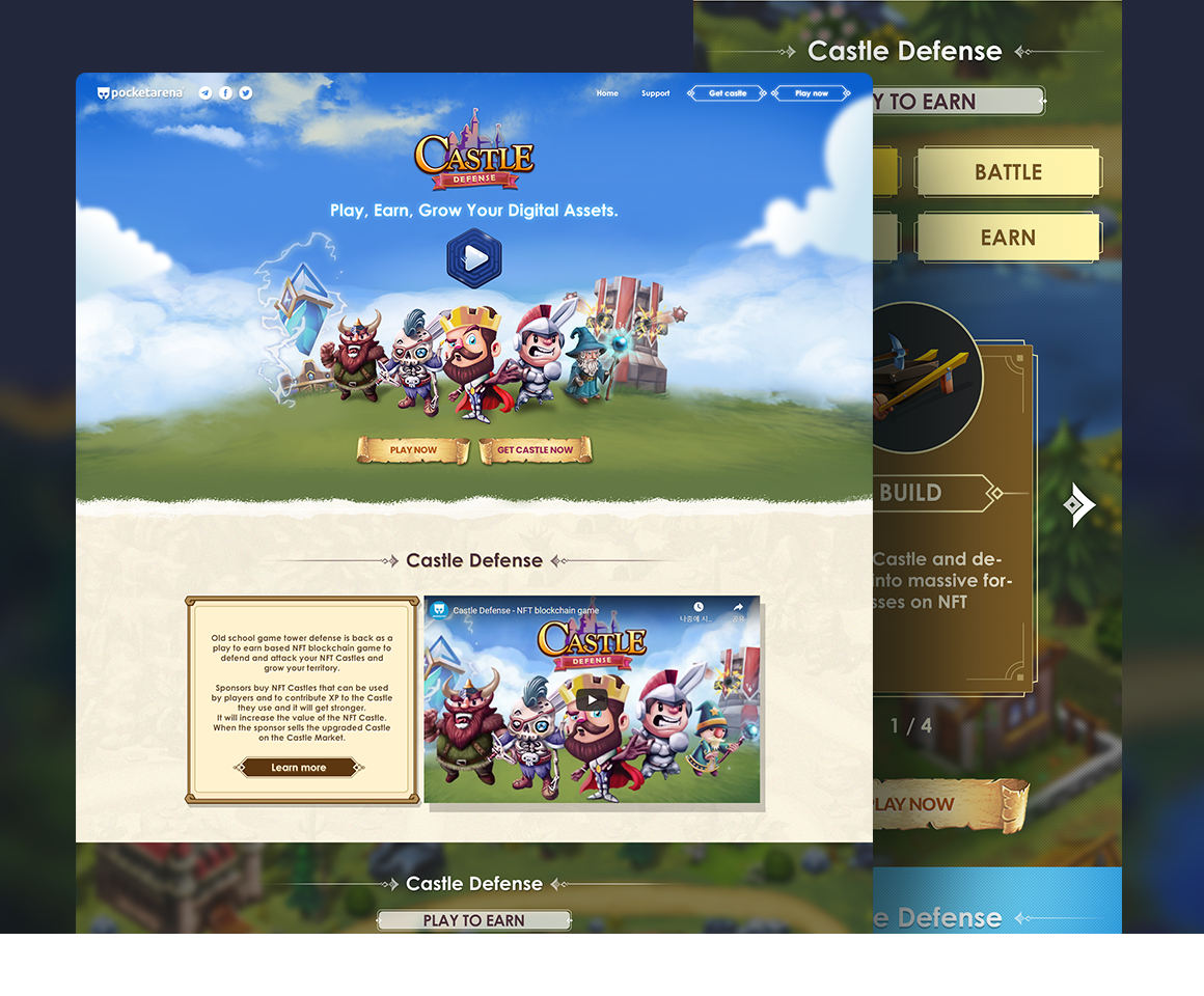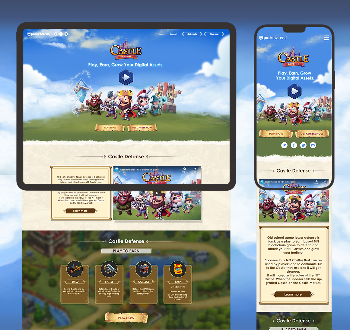 Castle Defense 게임의 오피셜 랜딩 사이트의 전체 디자인 작업을 진행했습니다.