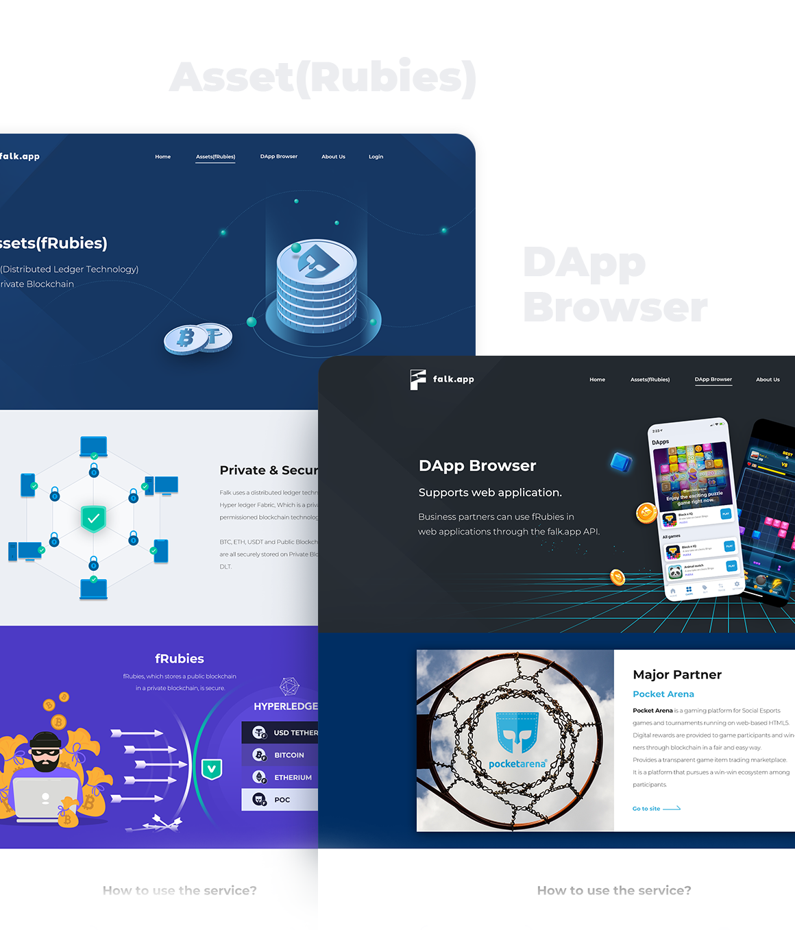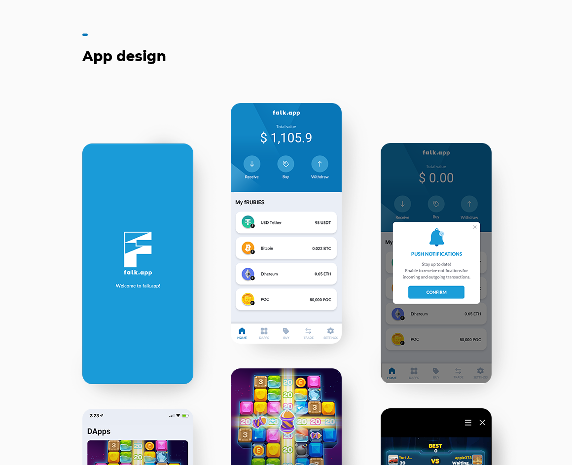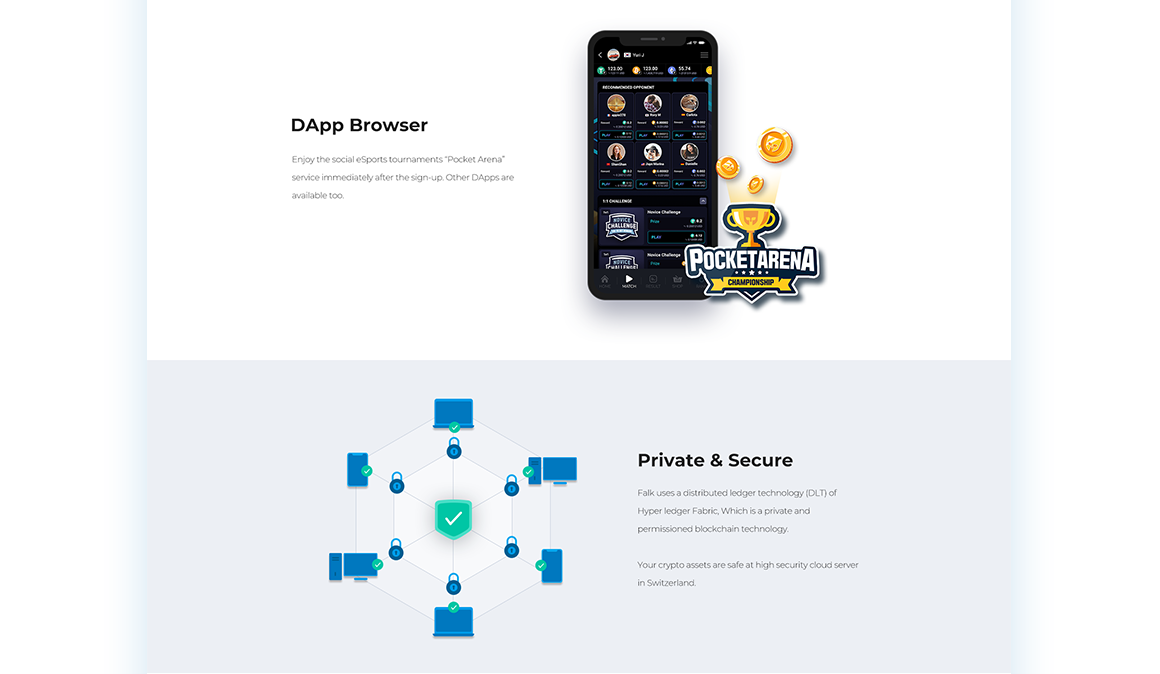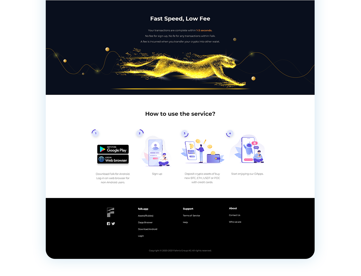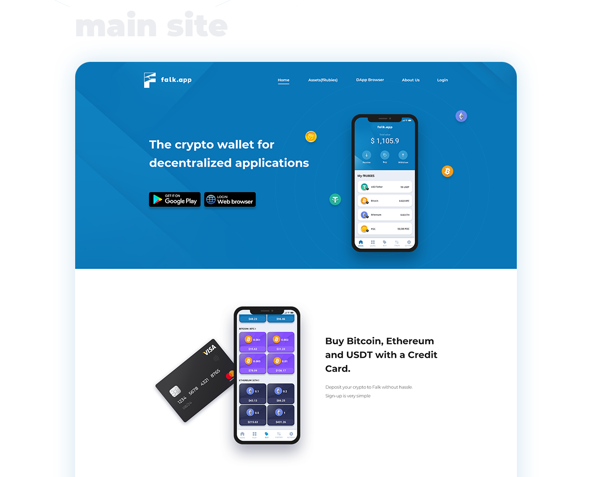 크립토 월렛 어플리케이션인 falk.app의 메인 사이트와 앱 디자인 작업을 진행했습니다.